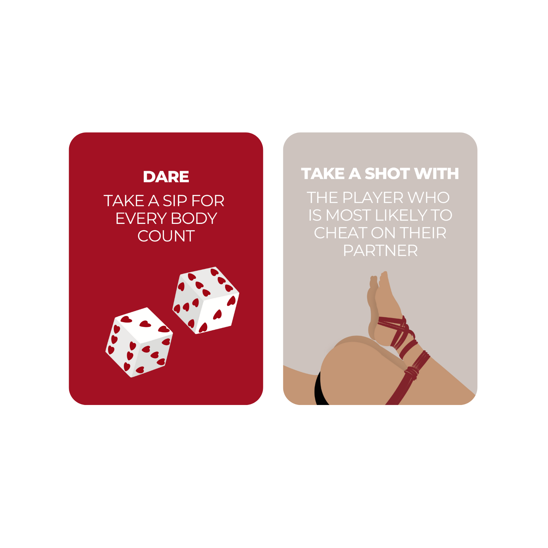 For example: Take a sip if you.... you can decide as a group whether only the person who draws the card drinks or everyone who feels related to the card.
